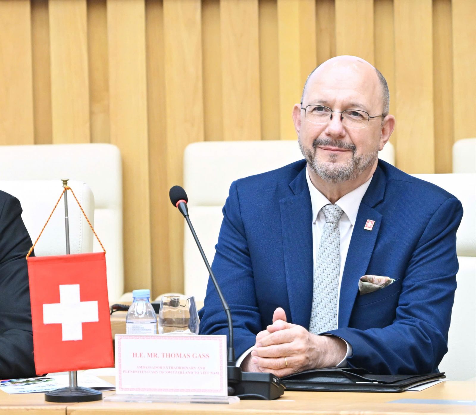 Ngài Thomas Gass - Đại sứ Đặc mệnh toàn quyền Thụy Sĩ tại Việt Nam tham dự buổi làm việc.